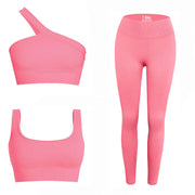 Stay stylish and supported during every workout with this Women’s 2-Piece Seamless Workout Set by GMY. Featuring a sexy one-shoulder sports bra with removable padding and high-waist shorts for tummy control, this set combines fashion and function for yoga, gym sessions, or casual wear.